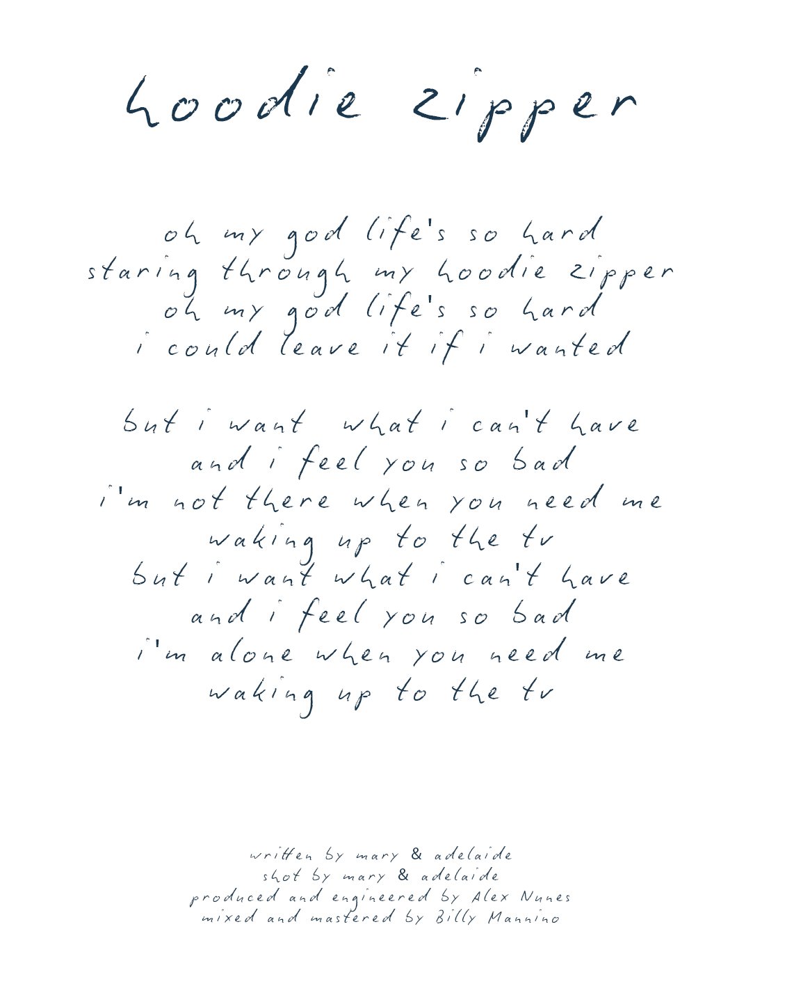 Recorded in a basement and brought to life in studio with producer/engineer Alex Nunes this record touches many cornerstones of indie rock / emo / and punk while keeping an organic natural tone to the instruments. Lead singer Aidan Mcguirk expels lyrics from the soul about love and loss, confusions of growing up and feeling trapped. “Oh my god life’s so hard, I could leave it if I wanted” Mcguirk sings, as if referring to life in his basement apartment.